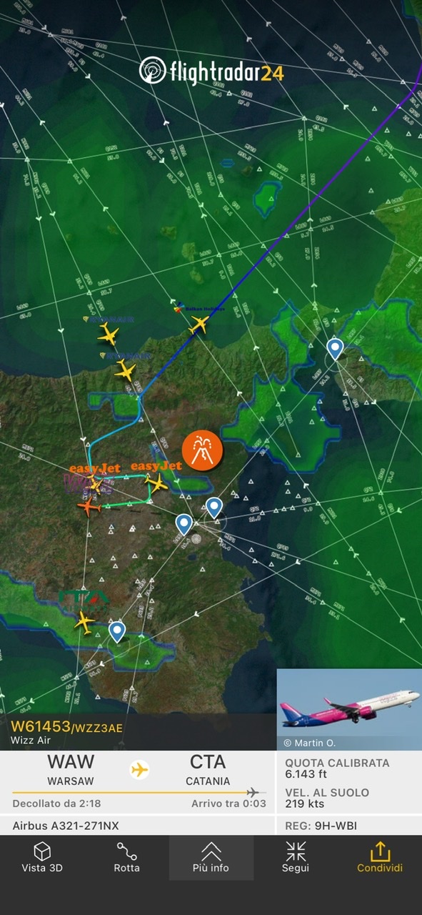Cinque sono gli aerei in prossimità dello scalo etneo , tutti in attesa di poter atterrare a Catania quando sarà possibile.