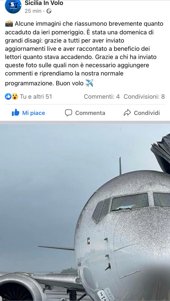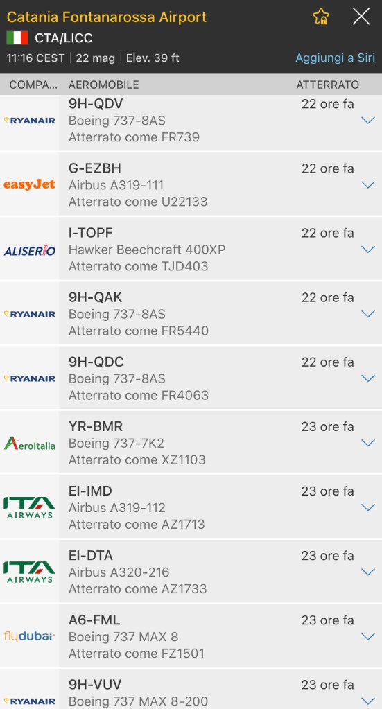 Si tratta di nove aerei ( 4 Ryanair, 2 ITA Airways , 1 AeroItalia, 1 easyJet, 1 flyDubai e un velivolo executive della Aliserio. In totale 10 aerei, i quali dovranno essere bonificati da questa precipitazione di cenere vulcanica bei modi previsti.