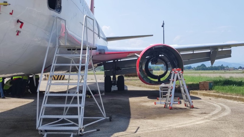 E’ in corso un’attività di manutenzione programmata presso Albatechnics dove e’ stata attuata la rimozione dei due propulsori a un Boeing 737/400.