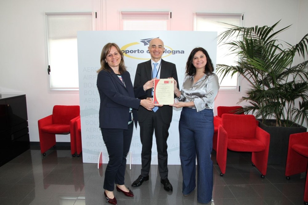 L’importante riconoscimento, arrivato alla fine dell’attività di audit, con misurazione degli indicatori specifici e delle procedure interne e con interviste alle funzioni competenti, è stato consegnato ufficialmente oggi da Roberta Prati, Industry & Facilities Director di Bureau Veritas Italia, all’Amministratore delegato e Direttore Generale di Aeroporto di Bologna Nazareno Ventola.