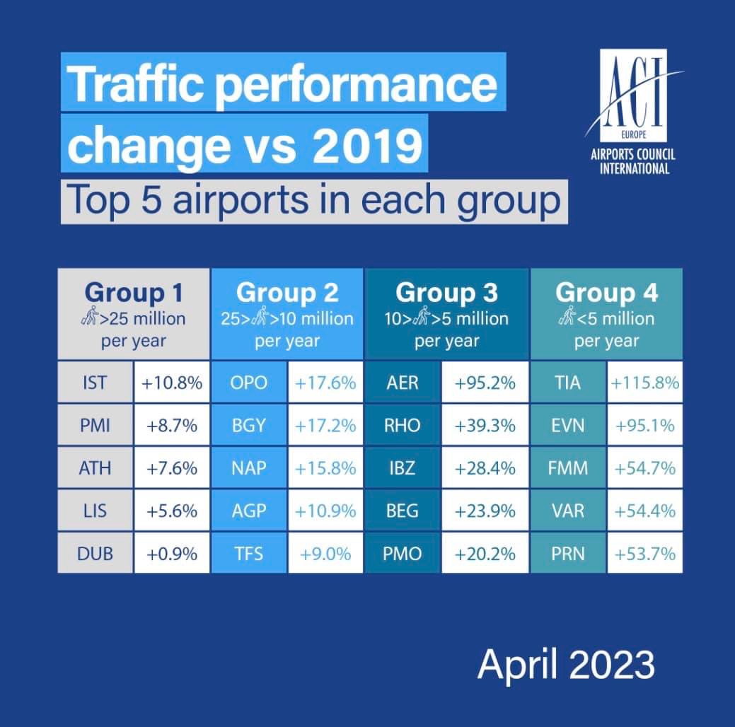 Tre aeroporti italiani sono sulla ribalta europea di ACI Europe per i loro forti numeri di crescita registrati in aprile 2023
