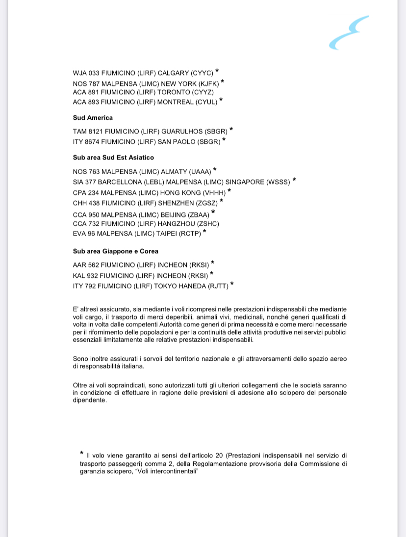 Voli garantiti in caso di sciopero
