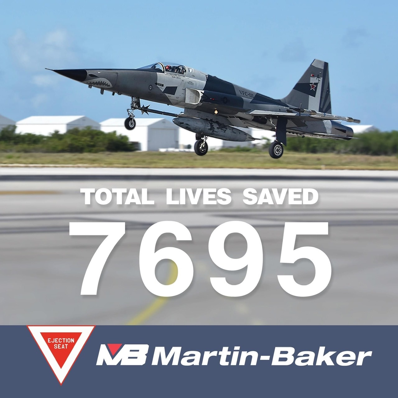 La società specializzata nella progettazione di sistemi di salvataggio Martin-Baker comunica che con il lancio avvenuto nei giorni scorsi a Key West di un pilota da un Northrop F-5N ha raggiunto il traguardo di 7695 persone salvate.