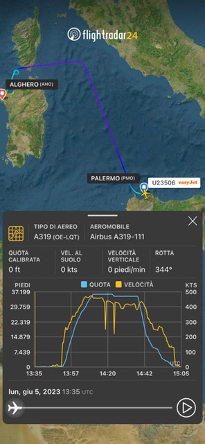 Il volo era la U23506 di domenica pomeriggio operata da un A319-111 marche OE-LQT.