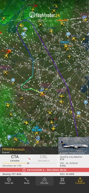 Un’oretta fa il volo FR6084 da Catania per Charleroi e’ atterrato fuori programma a Bologna.