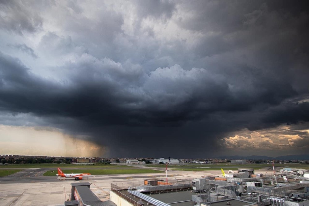 Nella foto di repertorio di Giorgio Adamo una situazione temporalesca nell’area dell’aeroporto napoletano.
