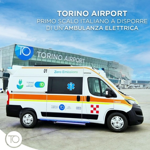 È entrata in servizio a Torino Airport la prima ambulanza elettrica per le operazioni di soccorso aeroportuali. Lo scalo di Torino è il primo in Italia e tra i primi in Europa a dotarsi di un veicolo a zero emissioni di CO2 impiegato per prestare assistenza sanitaria a passeggeri e utenti dell’aeroporto.