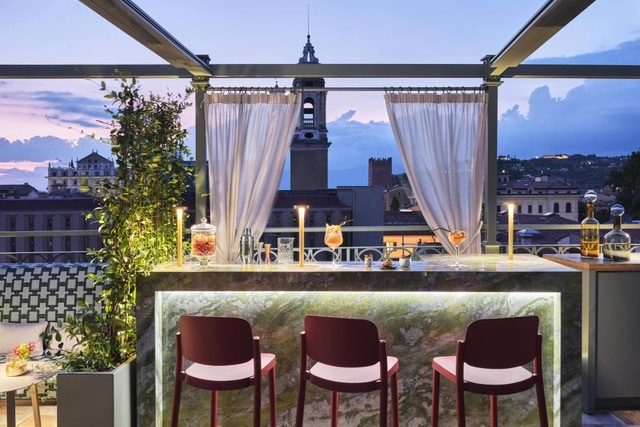 VISTA Verona inaugurato a maggio 2022 è la seconda proprietà 5 Stelle Lusso del Gruppo e l’unico hotel a Verona ad avere una piscina coperta e una Spa Suite. Nel cuore della città, dispone di 16 splendide suites dallo stile eclettico che combina pezzi iconici del design italiano ad arredi contemporanei di maestri artigiani. Il ristorante Sottovoce, al piano alto dell’edificio con terrazzo panoramico, regala una vista d’incanto a 360 gradi e un menù tra creatività e tradizione, sperimentazione ed eccellenze del territorio, arricchito da una cantina selezionata e nell’adiacente Infinity Bar. Fiore all’occhiello è la Spa, un vero angolo di benessere dove gli ospiti potranno dedicarsi a un momento rigenerante scegliendo tra i tanti servizi proposti. Anche VISTA Verona è affiliato a Small Luxury Hotels of the World.