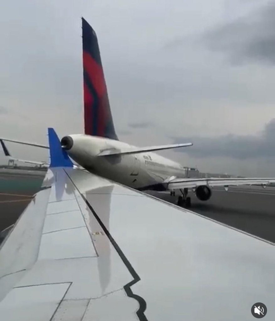 E’ il momento dove l’estremità di questo Boeing 737-9 MAX N37545 della United Airlines va in contatto con la parte posteriore dell’Airbus 321-211 N104DN di Delta Air Lines.