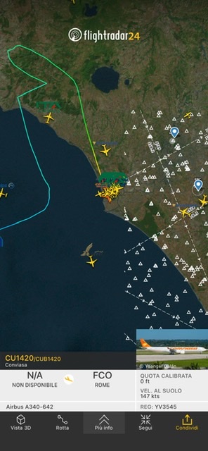 E’ appena atterrato a Roma Fiumicino l’A340-600 Conviasa YV-3545 in arrivo da Havana come CU1420.
