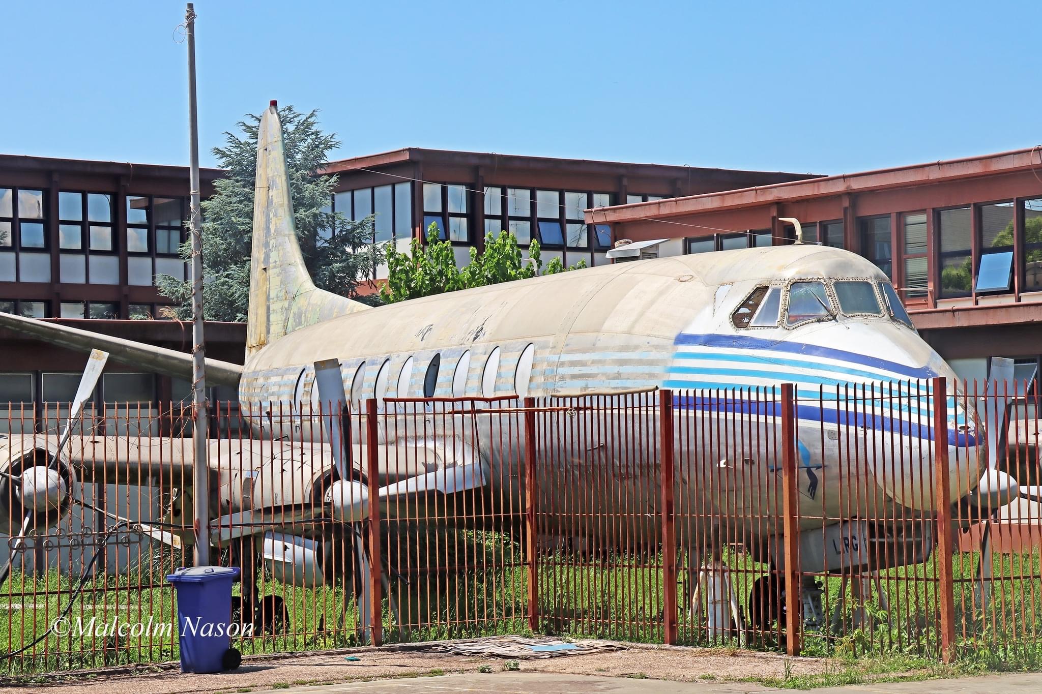 L’aereo passeggeri nella foto e’ il Vickers Viscount ex I-LIRG in display presso un istituto scolastico aeronautico . Era appartenuto all’Alitalia da dove si nota la livrea anni 60.
