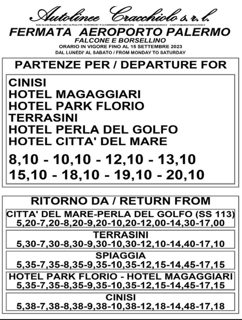 Il servizio sarà operato più volte al giorno dalla Autolinee Cracchiolo Srl. Gli orari sono in operatività fini al 15 settembre 2023.