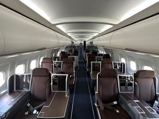 Poi gli interni di business Class e economy. Nella parte anteriore ha 23 posti e poi 131 in economica con a abreast classico 3-3.