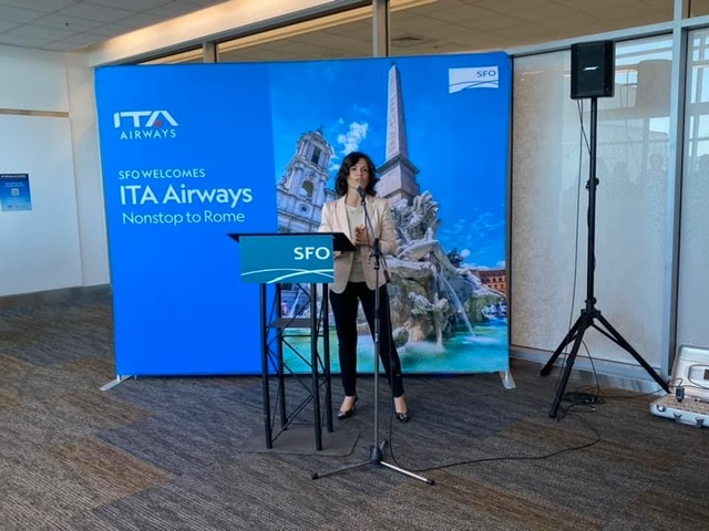 E’ stata proprio Emiliana Limosani a fare il discorso per conto di ITA Airways al gate di imbarco del primo volo per Roma Fiumicino.