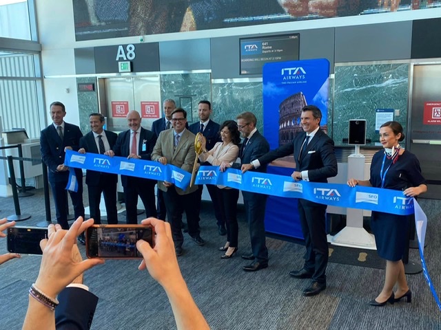 Questa e’ l’immagine che ha colto il momento nel quale l’Airbus 350-900 di ITA Airways ha toccato per la prima volta il suolo negli USA all’aeroporto di San Francisco International.