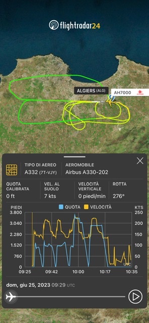 Il 25 giugno scorso il volo AH7000 della Air Algerie e’ stato pianificato per effettuare attività addestrative.