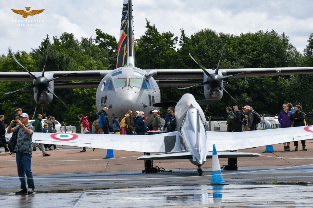 L’area tematica denominata ITAF100, allestita dall’organizzazione del RIAT, è stata visitata da un pubblico numeroso e variegato, per nulla scoraggiato dagli episodi di maltempo, anche intenso, che hanno punteggiato i tre giorni di manifestazione. Numerosi gli assetti chiave dell’Aeronautica Militare in mostra statica, tra cui: il tanker KC-767A, il sistema di sorveglianza e Comando e Controllo G-550 CAEW, il ricognitore marittimo P-72, il velivolo da trasporto strategico C-130J, l’elicottero HH-101, utilizzato per le operazioni speciali, i velivoli da combattimento Tornado, AMX ed Eurofighter, per non parlare dei due special color U-208 e C-27J. ITAF100 ha ospitato anche alcuni aerei che hanno fatto parte della storia dell’Aeronautica Militare, messi a disposizione da privati. Tra questi il De Havilland Vampire FB.52 e il FIAT G.46.