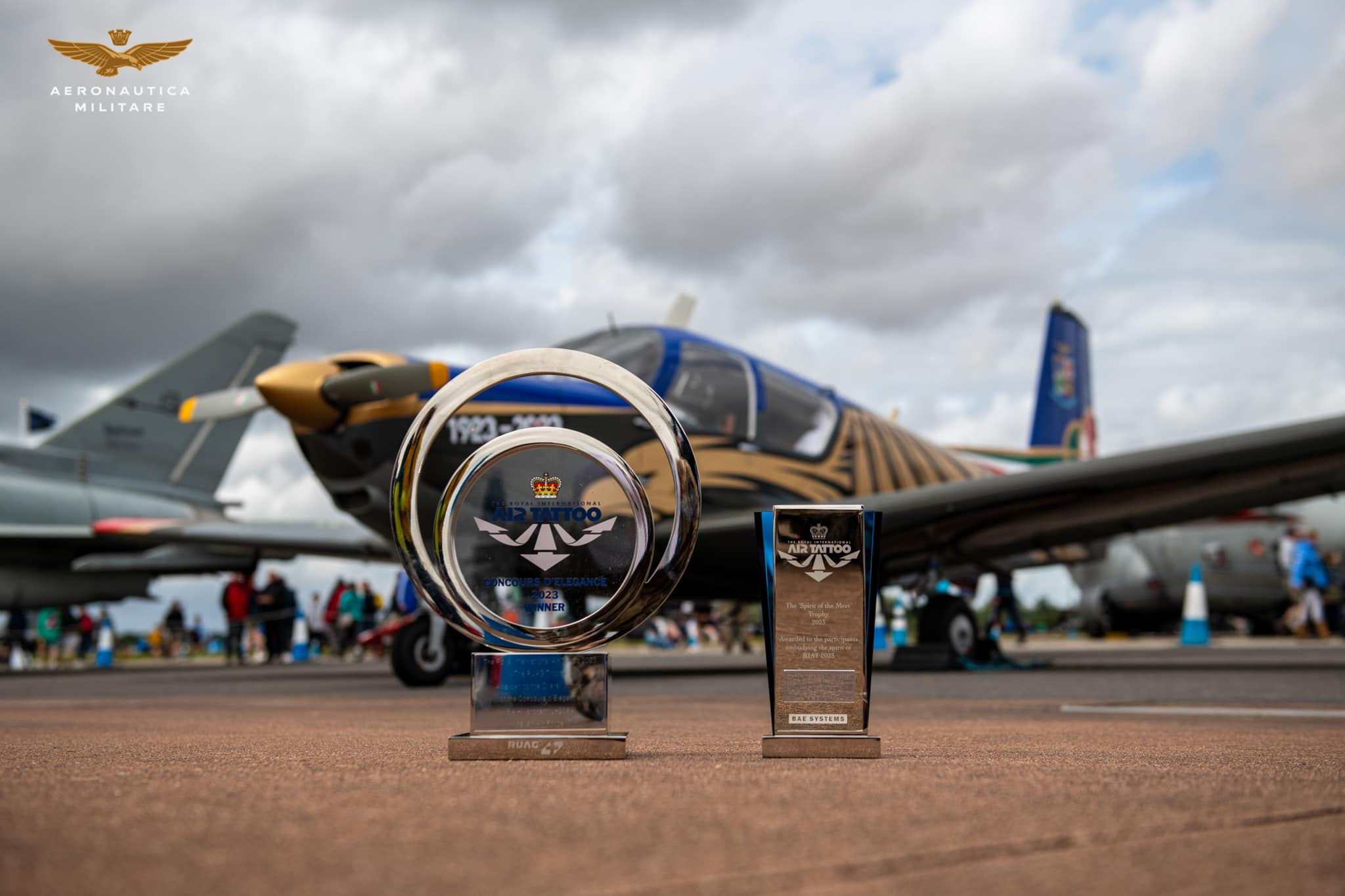 Anche quest’anno l’Aeronautica Militare si è distinta per particolari menzioni, vincendo ben due premi. Il primo, quello per il Concours d’élégance, che vuole premiare il velivolo con la livrea più bella, meglio presentata e dal carattere più distintivo, è stato aggiudicato da un team di giudici internazionali allo U-208 “Special Color” del 60° Stormo di Guidonia, con la sua livrea dedicata proprio al Centenario della Forza Armata. Un premio che i colleghi hanno voluto dedicare a due caduti del volo, recentemente scomparsi: il Col. Giuseppe Cipriano e il T.Col. Marco Meneghello, entrambi del 60° Stormo.