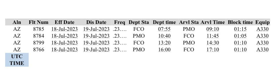 I voli saranno speciali con numeri AZ8785 e 8799 sulla Roma Fiumicino – Palermo e AZ8784 e 8766 sulla Palermo – Roma Fiumicino.