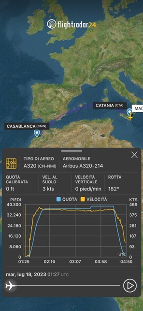 Alle 2:33 il volo MAC997N e’ atterrato con A320 CN-NMI. E’ quindi ripartito alle 3:36 come MAC486N alla volta di Casablanca.
