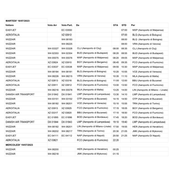 La società di gestione dell’aeroporto di Comiso ha pubblicato su social Facebook il file con la lista dei voli in partenza e arrivo dallo scalo ibleo.