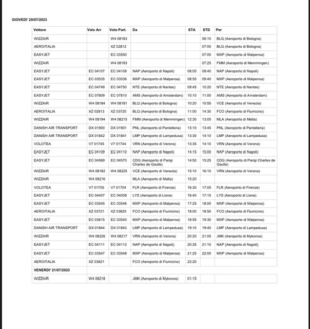 51 i movimenti di oggi a Comiso. 26 sono partenze e 25 gli arrivi. Qui di seguito quali sono i voli previsti per oggi.