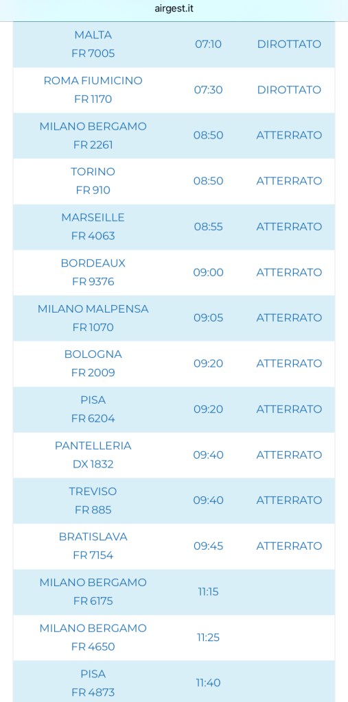 La “Lupa di Mare” stamani a Trapani ha creato qualche problema e i primi due voli sono atterrati a Palermo. Entrambi , arriveranno poi a Trapani per caricare i passeggeri dei rispettivi voli in partenza.