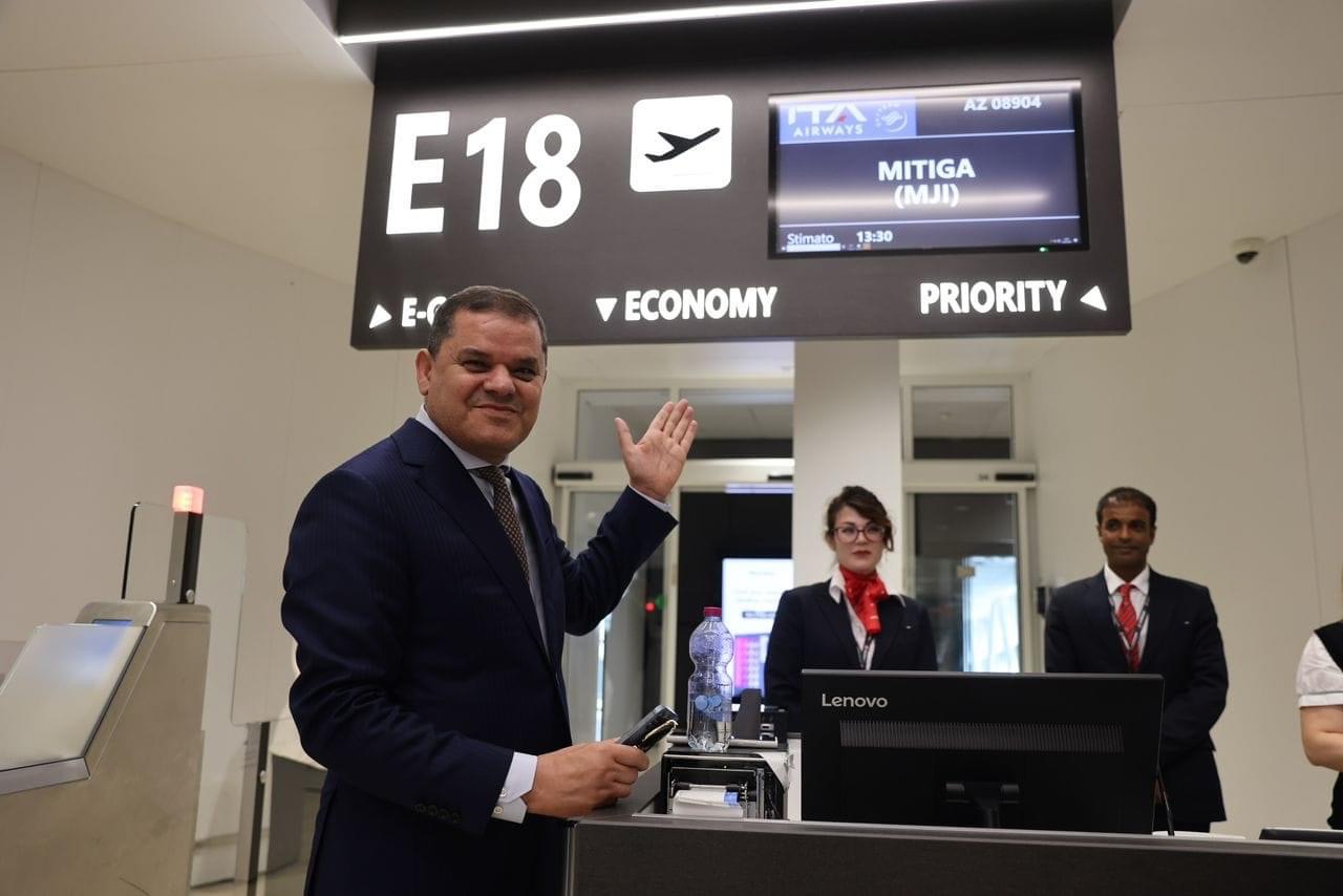 A bordo di questo volo c’è’ il Primo Ministro della Libia Abdel Hamid Dbeiba fotografato al gate di imbarco.