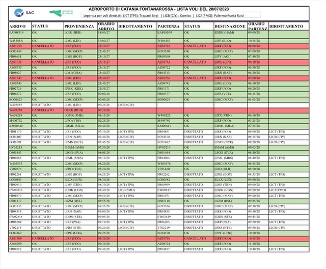 La SAC , la società che gestisce l’aeroporto di Catania rendendoti gli operativi per la giornata odierna.