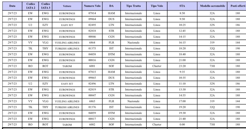 La Gesap ha comunicato la lista dei voli ex Catania previsti a Palermo nella giornata di domani 29/7/2023.