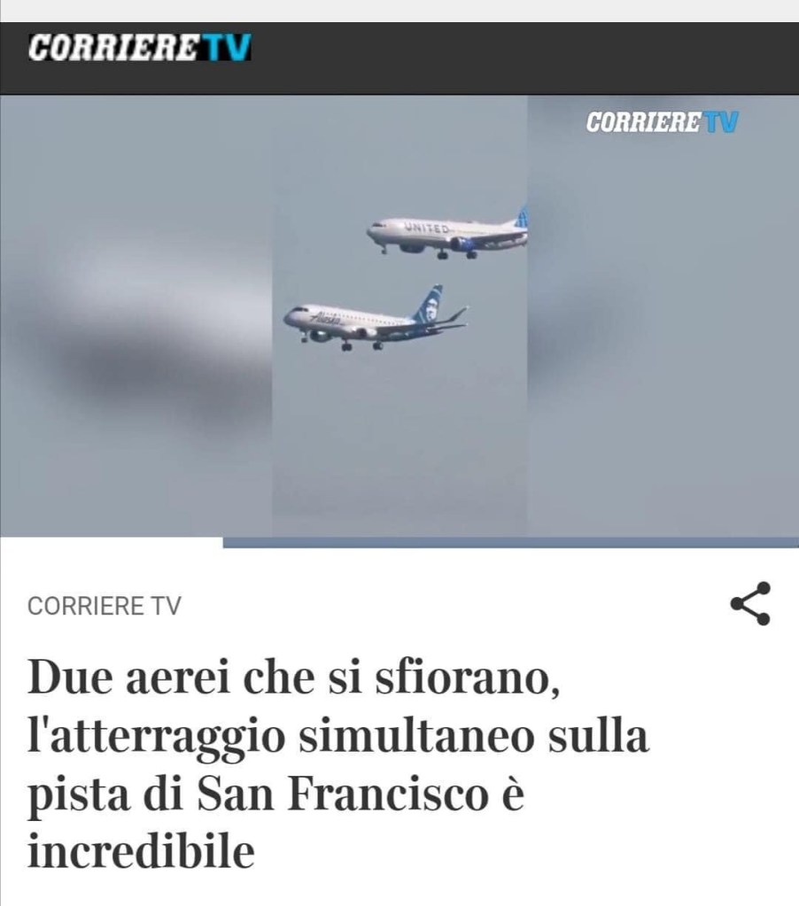 E’ una vista prospettica ingannevole quella di questo video che illustra due aerei appaiati in avvicinamento a San Francisco. Ma in realtà non lo sono, perché c’è’ una separazione laterale.