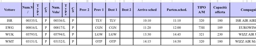 4 arrivi e 4 partenze sono schedulati dalle compagnie aeree : Israir , Eurowings , Wizz Air UK e Wizz Air.