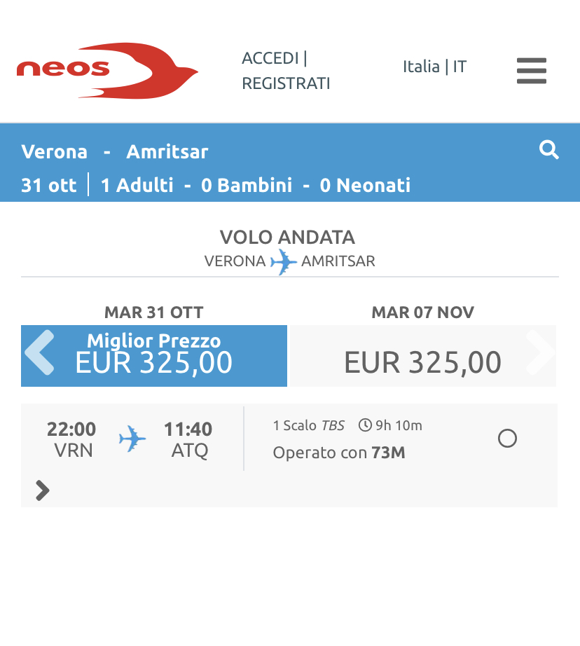La compagnia aerea italiana Neos ha aperto alle vendite il volo diretto Verona – Amritsar.