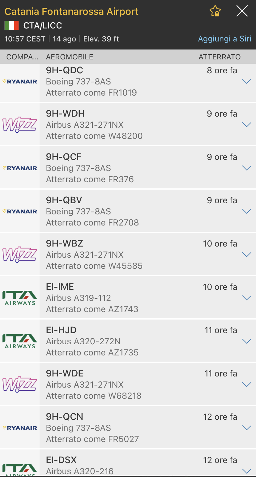 Quattro sono Ryanair, tre di Wizz Air e tre di iTA Airways. Poi uno di easyJet e uno della JetStream Charter.