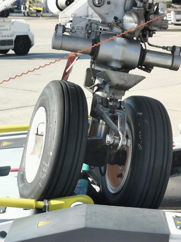 Come si vede ha ruotato il carrello anteriore, ma è uscito dalla sede che doveva averlo bloccato fino al termine dell’operazione.