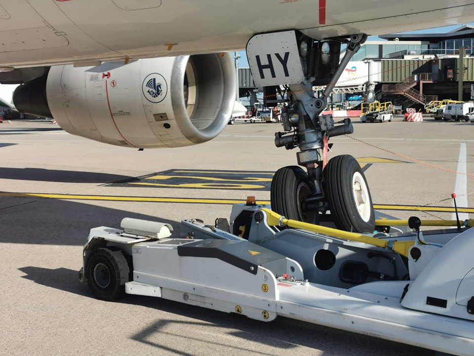 La classica manovra che accade n-volte al giorno in un aeroporto. In questo caso qualcosa è andato storto. Tutto quanto si è bloccato e il volo è stato forzatamente cancellato.