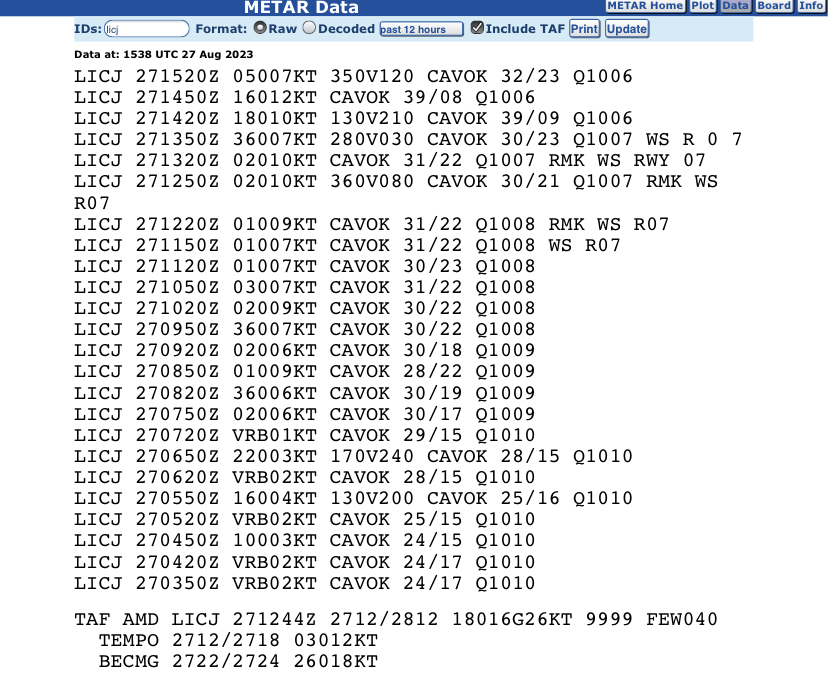 Nel frattempo come si legge dal bollettino delle 13:50 locali fino a quello delle 15:50 c’e’ stato windshear riportato sulla pista 07.