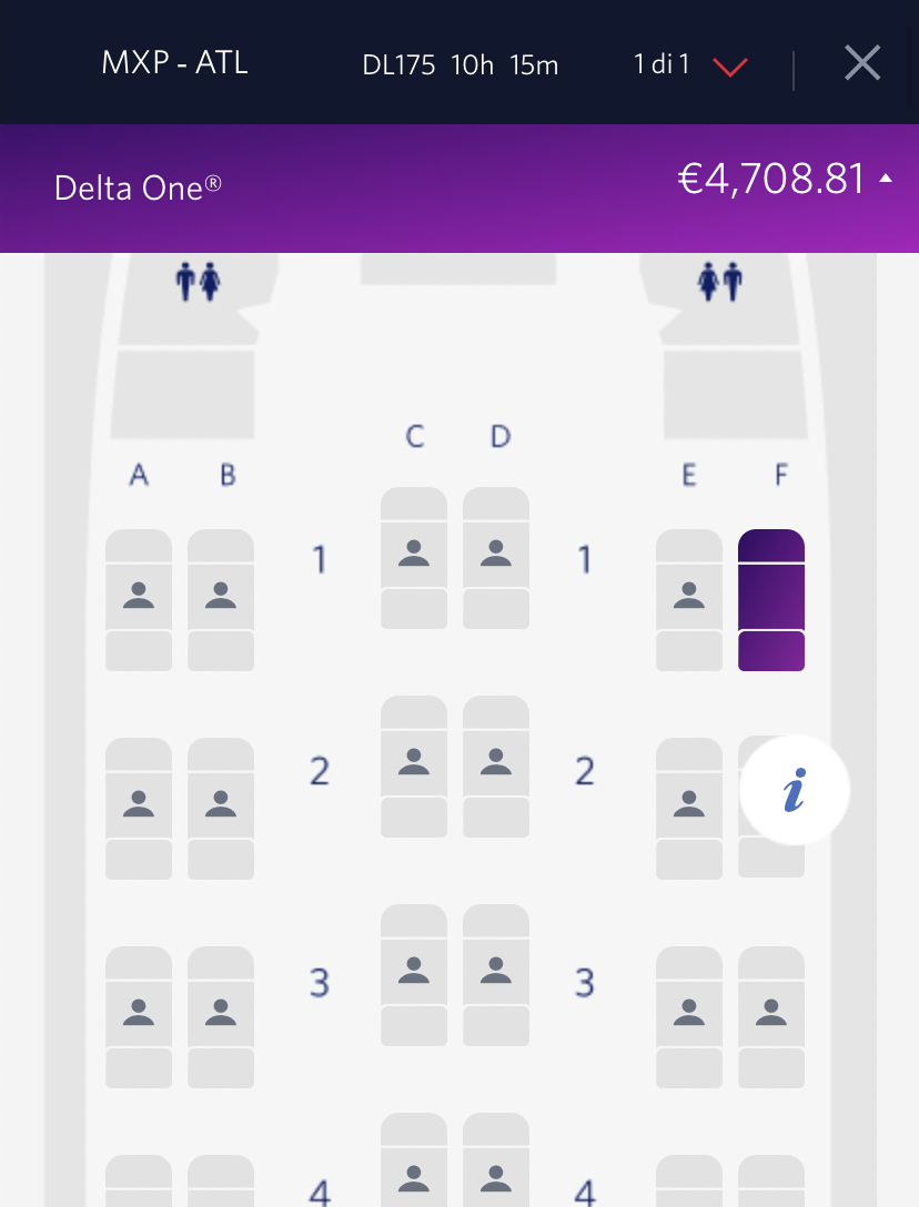 Il prezzo esposto di 4708,81€ e’ per una sola andata in DeltaOne tra Milano Malpensa e Atlanta.