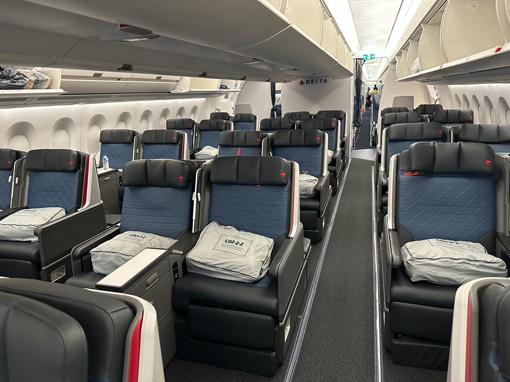 Si, siete a bordo di un Airbus 350/900 della Delta Air Lines e trovate questa DeltaOne, non e’ con il suo prodotto di punta, cioe’ la DeltaOne Suites.