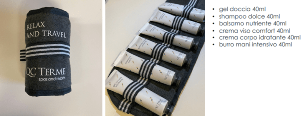 - un kit QC Terme con 6 tubetti di cosmetico all’interno.