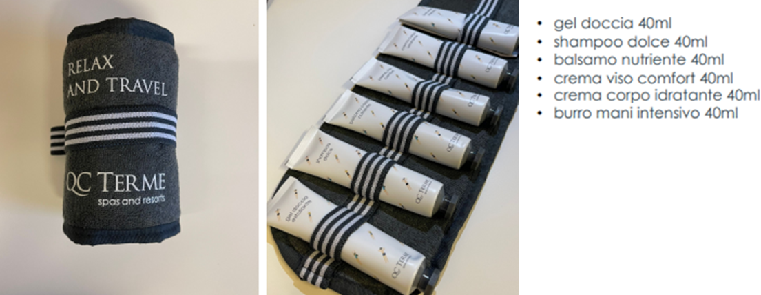 - un kit QC Terme con 6 tubetti di cosmetico all’interno.
