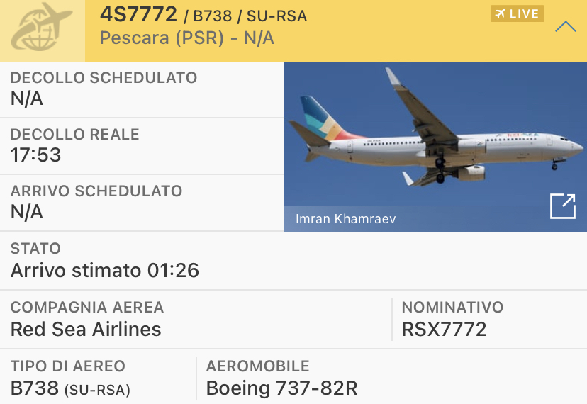 Dopo il suo arrivo all’aeroporto abruzzese e’ poi ripartito sempre von destinazione il Mar Rosso a Sharm el Sheikh.