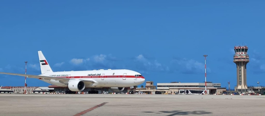 Il grosso aereo corporate e’ adibito al trasporto di dignitari di quell’emirato dell’UAE.