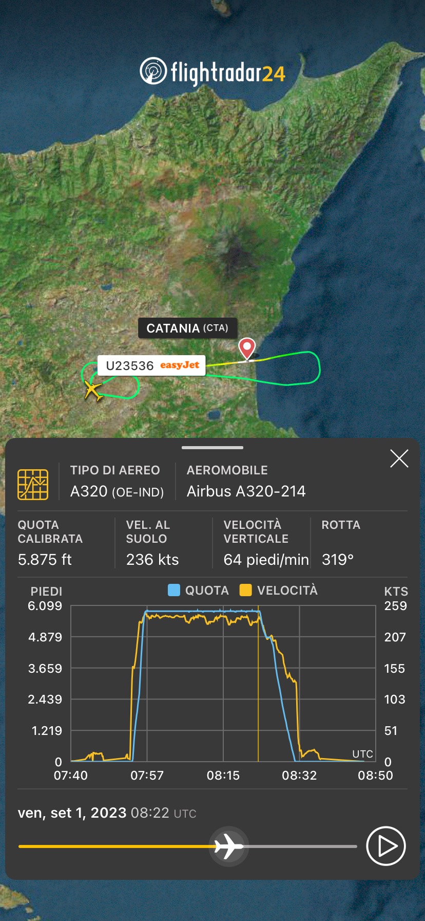 L’aereo , un A320-214 marche OE-IND e’ decollato per pista 06 e poi ha fermato la salita a 6000ft. E’ poi rimasto in holding 27 minuti, quindi ha proceduto per il rientro per pista 06.