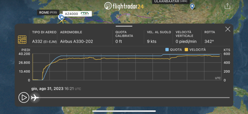 Il volo AZ4000 sta volando verso UlaanBataar dove atterrerà fra un paio d’ore abbondanti.