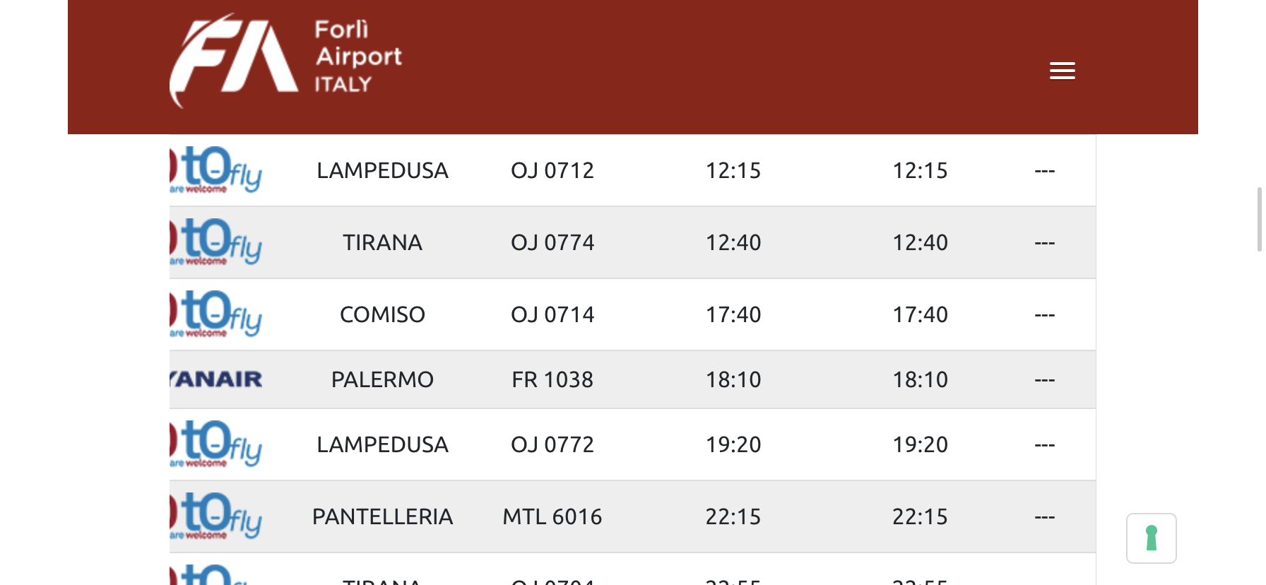 Oggi c’e’ solo Nyxair e Raf Avia, sei i voli in tutto, due quelli per Tirana e Lampedusa e poi rimangono altre due destinazioni : Pantelleria e Comiso.