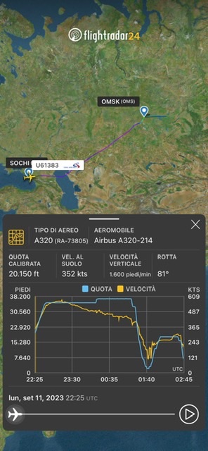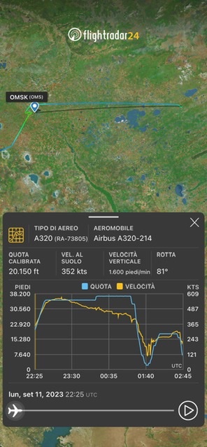 Il volo U6 1383 dopo aver iniziato un avvicinamento a Omsk poi interrotto era salito a FL180 e si stava dirigendo verso Novosibirsk, quindi la perdita di quota e l’atterraggio in un campo.