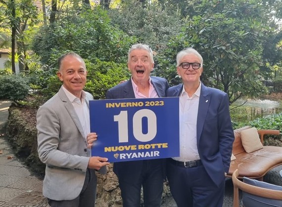 1-Da sinistra a destra: Giacomo Cattaneo, Director of Commercial Aviation Sacbo, Michael O’Leary, CEO Ryanair Group ed Emilio Bellingardi, General Manager Sacbo.