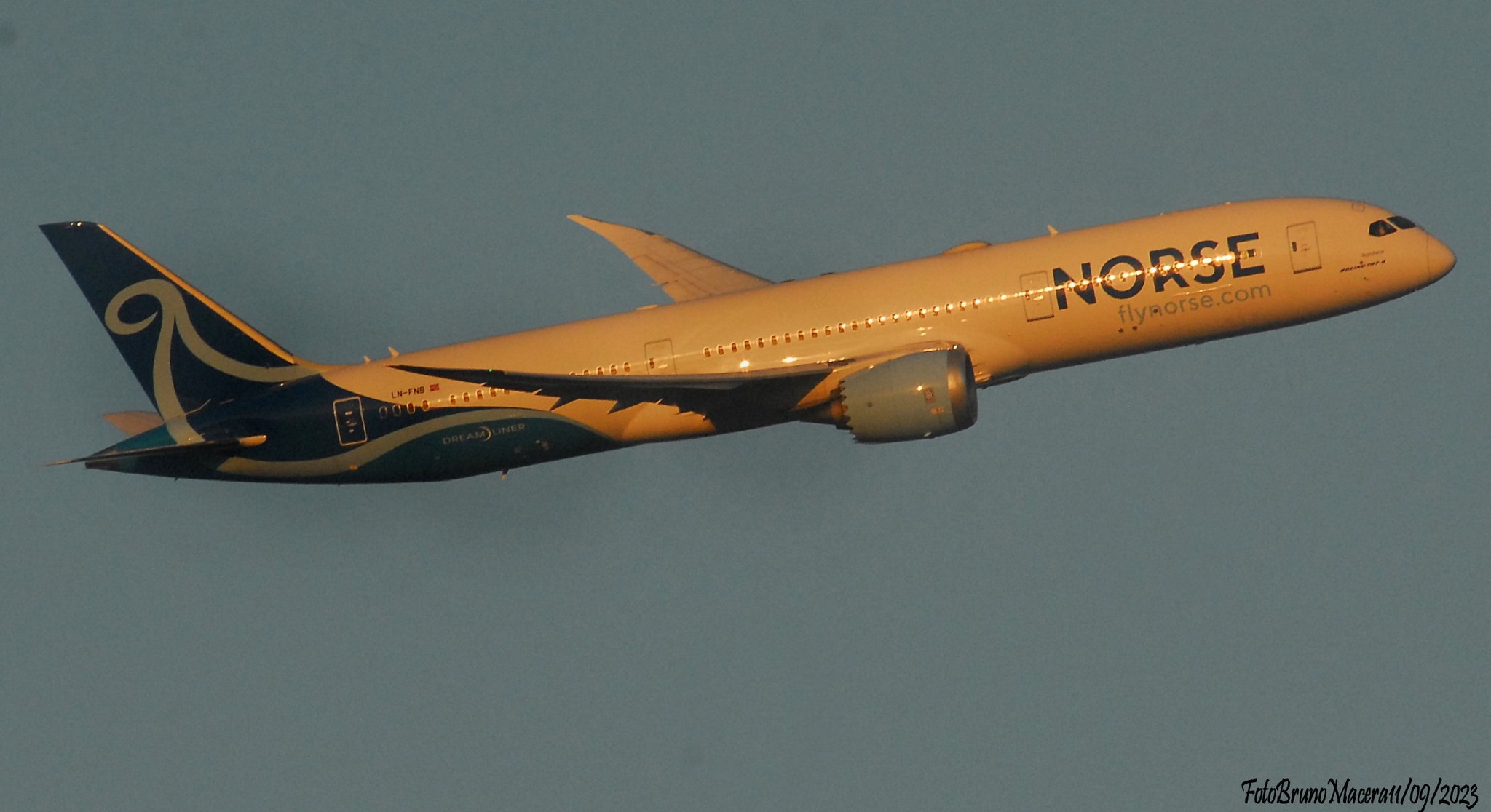Nell’immagine serale di Bruno Macera del Boeing 787-9 della Norse Atlantic Airways, la compagnia aerea norvegese ci sarà anche nel 2024.
