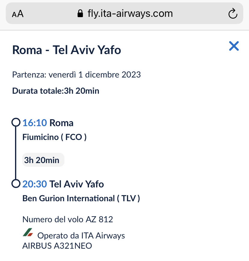 Il primo impiego in senso contrario sara’ sulla Tel Aviv – Roma Fiumicino sara’ il giorno 2 dicembre alle 9:15 in partenza e arrivo alle 12 a Roma.